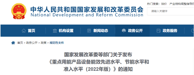 11月17日,国家发改委等五部门发布关于《重点用能产品设备能效先进水平、节能水平和准入水平(2022年版)》的通知(以下简称《通知》)。