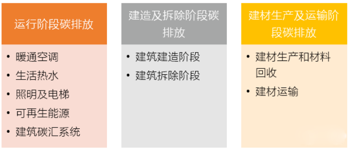 《建筑碳排放计算标准GB/T51366-2019建筑全生命周期碳排放计算主要包括运行阶段、建造及拆除阶段和建材生产及运输阶段碳排放。