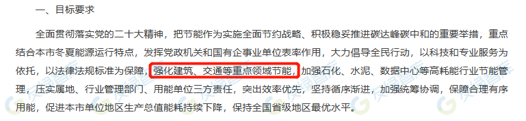 在目标要求中,明确提出要强化建筑、交通等重点领域节能。