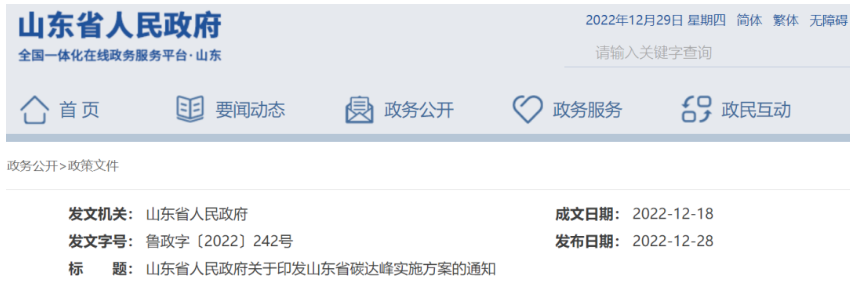 山东省碳达峰实施方案