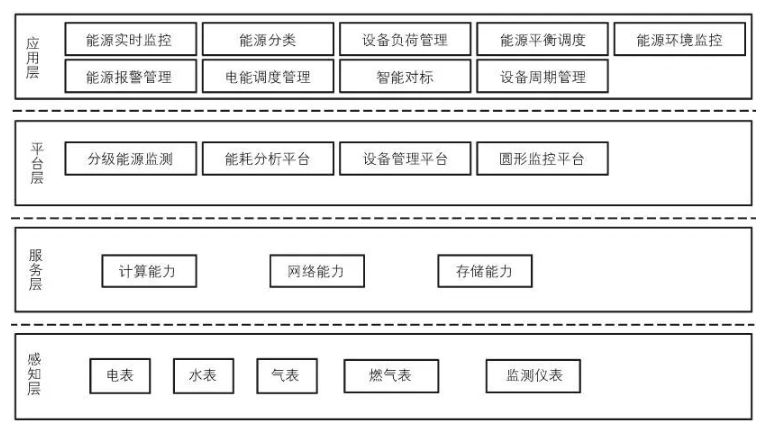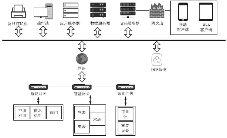首先,数字孪生技术又指数字镜像或数字双胞胎,它是通过构建复杂的物理实体以此实现现实空间到虚拟数字空间的一种全息映射技术,并利用虚实信息连接,模拟出物理系统的动态特征以及实时状况。其次,数字孪生技术还集成了数据采集功能、数据仿真以及数据通信等多种学科的一种系统性工程。其中,仿真是该项技术的核心能力,可以实现对系统的数据、动作以及状态进行拟实。传统的能源管理系统主要是对电力、动力以及水道进行独立管理,这种能源管理模式已经无法满足现代化生产的能源管理需求。而科学的、智慧的能源管理作为现代化信息集成模式,既实现了对资源配置的优化和能源的改善,还实现了单一设备节能向智能化、系统化等方向转变。因此,综合智慧能源管理系统的设计,实现了对电力能源系统、动力能源系统等各个单元的数据进行采集和监测,预测与管理等全面的智能管理模式,从而为高质量能源和服务奠定了良好的基础。因此,该系统形成了动态能源价格机制,利用电动汽车负荷调节与储存装置,根据电力不同阶段需求,保障电力系统的稳定运行。总体上来说,综合智慧能源管理系统中应用数字孪生,已经成为综合能源领域中的重要热点问题。综合智慧能源管理系统的总体设计如图1所示。首先,该系统的设计可以支持多种工业接口的应用,如PLC接口、智能仪表接口以及在线分析仪接口、PDA接口、智能传感器接口等。其次,该系统设计支持西门子Profinet通信协议等所有的通信协议。此外,还可以根据实际需求和网络的情况,实现有限组网模式、有线和无线的混合组网模式、无线组网模式等多种类型。最后,能够实现对能源的能耗数据进行采集、分析和优化控制管理。从系统软件架构方面来看,该系统的软件架构主要由能源实际管理、数据自定义、能耗信息报告以及终端能耗预警、能源监控等构成。具体如图2所示。其中,从能源的实际管理方面来看,可以借助对不同类型能源介质的单价或者动态的价格更新,计算产品生产的能源成本。并借助外供与回收的指标,对产品能源成本进行综合计算。从能源的情况方面来看,借助对能源数据的变化趋势分析,可以为企业节能减排和综合能源管理工作提供一定的数据支撑。从能源的监控可视化方面来看,综合智慧管理系统的设计可以实现对多种类型的能源介质数据进行实时的采集和监控,并利用数据可视化技术更加直观地对能源数据进行展示。此功能通过利用采集分类以及对能耗数据计量分项等,为能耗数据精细化管理提供相应的数据,保障了能源数据的可靠性。数据采集得到的数据需要存储在计算机当中,并且还可以上传到大数据之中,便于相关人员对能耗数据进行相应的监控与管理,便于上级管理部分对能源的数据汇总进行统筹安排与管理。数据监测功能的设计主要是利用数据表格与图表的模式,将采集得到的相关数据在综合智慧能源监控平台中进行显示和实时监控,这对能源企业来说具有非常重要的作用。而数据监测的精准性会对工作人员把控现场具有重要的影响。因此,在综合智慧能源管理系统设计时,需要可以做到及时对数据统计信息进行更新,并将数据以图表方式或者文章的形式,在显示器上进行显示,使工作人员能够更加直观地从数据当中获得设备的信息,及时对相关设备状态进行调整,能有效避免设备由于过热或者电压不足等情况发生故障,提升系统的稳定性。从能耗统计的方面来看,该功能主要是对能耗的数据、能耗分项以及区域能耗和能耗指标等进行统计。其中,还包含总能耗定比,也就是指实际消耗的能量所占据总能量的百分比,并利用百分数的方式进行表示。同时,总能耗主要用于综合分析。因此,综合智慧能源管理系统的设计,能够自动实现对相应的数据进行统计,并将统计完成的数据存储在计算机数据库当中。这样一来,用户就可以利用数据管理软件,直接实现对能耗比的信息进行查询,并做出相应的决策,使得其工作效率得到提高。从能耗分析方面来看。综合智慧能源管理系统可以利用不同分析算法工具对能源消耗的数据进行计算与分析。并将其能耗进行分类成建筑能耗、区域能耗等类型计量数据,从而汇总成统一的能耗值。并根据总能耗、但能耗以及对标定等相关指标,实现对能耗水平进行综合分析与对比。同时,在对比中利用标准指标对比实现,并生产对应的图标,以此实现对能耗数据的研究,为领导层的决策提供相应的依据。在工业生产过程时,综合智慧能源管理系统的应用可以合理有效地利用能源,以此降低能源消耗,使得经济效益得到提升。同时,可以将能源计划、能源的管控以及统计分析等下放到各个单位当中,从而使得节能工作责任得到明确。并且还可以实现对不同单位的能源消耗水平,设置定额用能实现,以此达到节能减排,使得能源的利用效率得到提升。智能分析功能主要包含了健康状况分析、设备状态分析以及故障诊断分析等3个功能构成。其中,从设备的健康状态方面进行分析,可以利用数据采集平台中所存储的设备每项指标状态数据,展开全面的分析,并对各个类型的指标与设备之间建立起相关性分析,并实现对设备的健康相关特征值,如特征频率以及相位等进行重点的监控。通过对设备的运行以及状态监测历史数据进行对比分析,构建关于设备的