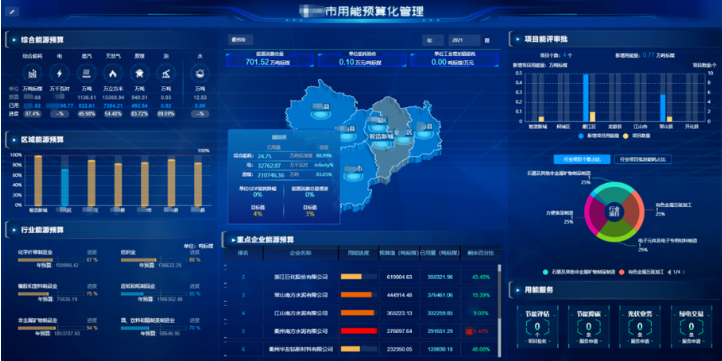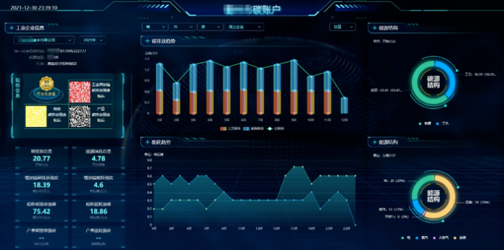 在能耗和碳排统计上,平台会按照区域、行业等多个维度,实时统计和监测能耗总量与强度、碳排总量与强度。同时,平台还提供了相关控碳降碳工具,如城市用能预算化管理、企业产品碳足迹管理、碳咨询、碳金融管理等。帮助地方政府更加实时地去掌握本辖区内的碳排放以及能耗的实时核算和统计,同时也可以帮助政府及时地识别出高排放、高耗能的行业和企业,可以及时预警,调整政策以及后续产业发展方向。