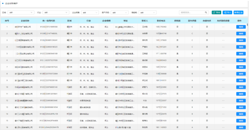 将园区内所有企业的所有信息汇集到一张统计报表中,支持筛选、查询、导出操作,便于园区管理者对企业信息的获取和调用。