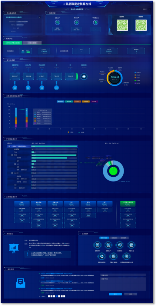 该场景是整个“碳足迹”体系的核心,主要功能是为企业提供碳足迹核算,展示工业产品碳足迹。