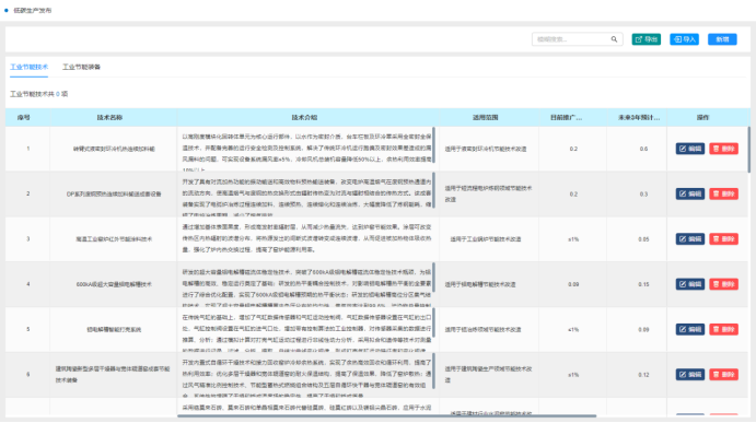 在预算分配发布界面中,将基于用能预算分配算法,对各区域、各行业的参与企业进行预算分配以及发布,也同时提供了算法中的配置系数的编辑功能,便于算法优化调整。